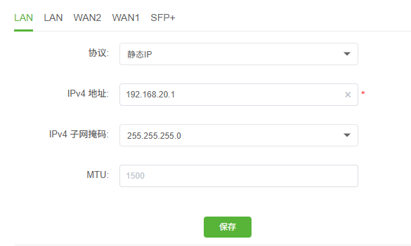提示:“WAN口”默认协议使用“动态IP”,当“LAN3”口切换“WAN2”口或“WAN2”口切换“LAN3”时,配置会丢失,请谨慎操作。
