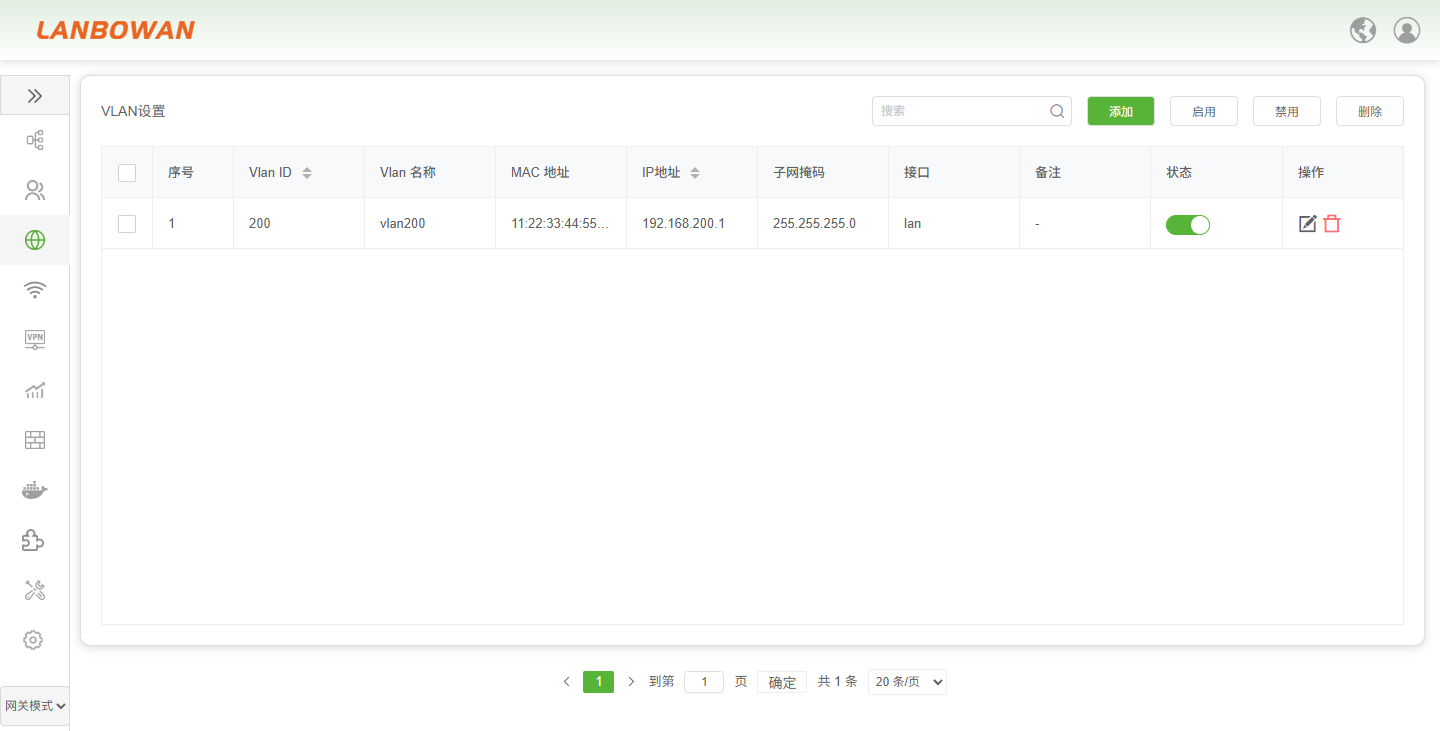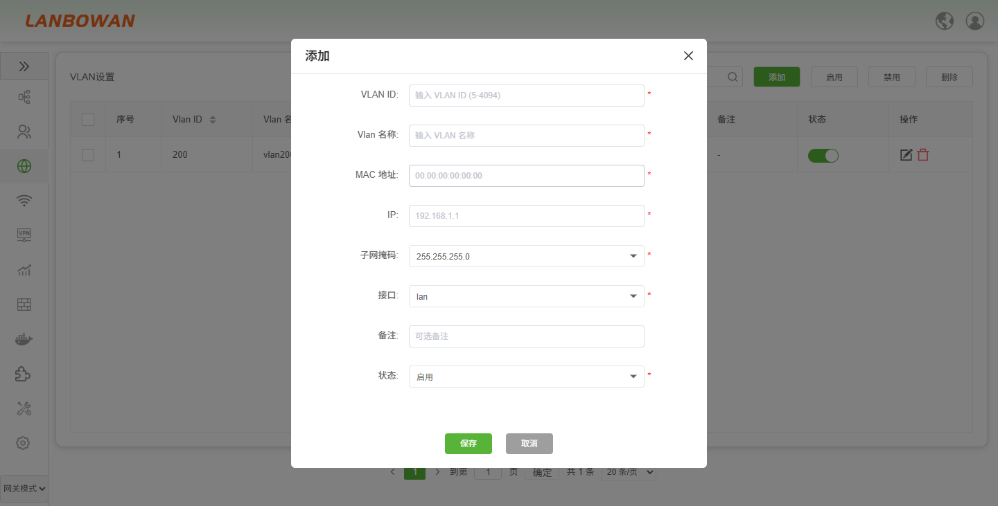 | 启用 | 支持批量启动VLAN接口 |
